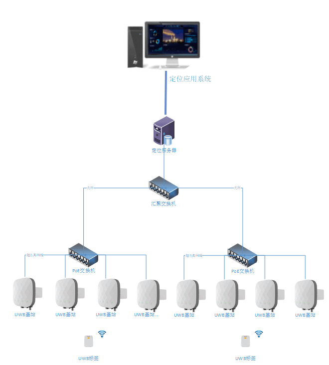 • Positioning Engine Algorithm Software: Deployed on-premises, it collects underlying data and processes it through the positioning engine's algorithms to obtain the precise coordinates of the tags.